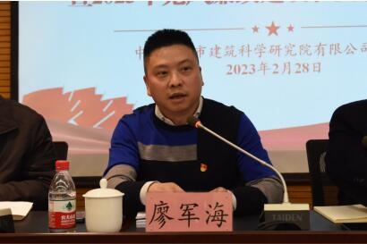 228日下午,重慶市建筑科學研究院有限公司黨委召開2022年度黨組織書記抓基層黨建工作述職會暨2023年黨風廉政建設和反腐敗工作會。集團黨委委員、董事、副總經理廖軍海到會指導并發表講話。公司黨委專職副書記廖學文主持會議。公司領導班子成員、各黨組織書記、全體中層干部參加會議。