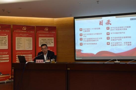 活動(dòng)現(xiàn)場,市建科院公司黨委書記、董事長冉龍彬,聚焦深入學(xué)習(xí)貫徹黨的二十大精神,以《全面學(xué)習(xí)、全面把握、全面落實(shí)黨的二十大精神》為題,面向公司廣大黨員干部及生產(chǎn)經(jīng)營一線職工,作了精彩而生動(dòng)的宣講報(bào)告。