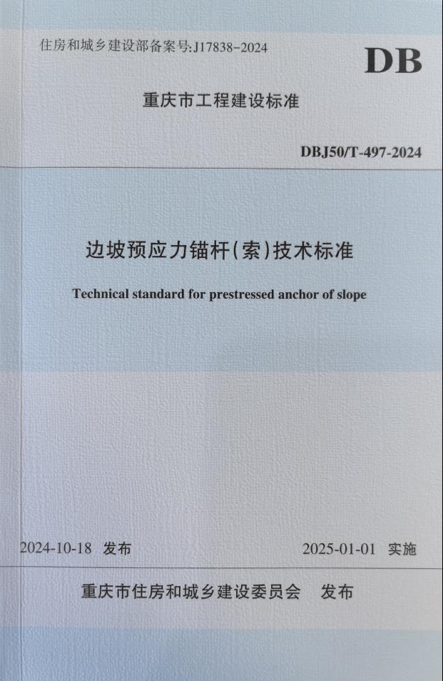 作為主編單位,在標準編制過程中,市建科院調(diào)查總結(jié)了近年來重慶市在邊坡預應力錨桿(索)設計、施工、檢測、監(jiān)測及質(zhì)量驗收的工程經(jīng)驗,參考了國內(nèi)有關(guān)技術(shù)標準,吸收了國內(nèi)外相關(guān)科技成果,開展了多項專題研究,并在重慶市范圍內(nèi)廣泛征求了有關(guān)單位的意見,經(jīng)反復討論、修改、充實,最后經(jīng)審查定稿。標準的正式施行,是對公司在邊坡預應力錨桿(索)方面技術(shù)實力的肯定,彰顯了公司在該領域中的技術(shù)引領地位,對提升邊坡預應力錨桿(索)技術(shù)水平影響力方面具有重要意義。