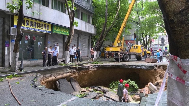 某區某街道路段因暴雨影響突發塌方,??吭诼愤叺膬奢v小車和一輛摩托車墜入坑中,事故發生后屬地公安、消防、應急等多部門迅速響應趕赴現場開展緊急處置工作,市建科院立即派出專業檢測團隊,前往現場開展道路兩側建筑物的變形檢測、監測工作,作出準確技術評判,為后續險情處置提供理論依據。
