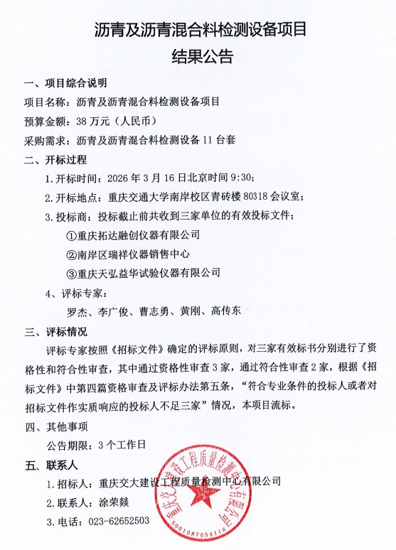 瀝青及瀝青混合料檢測設備項目結果公告