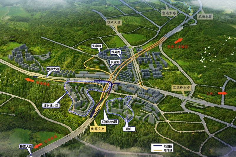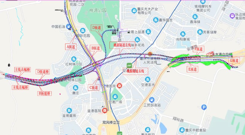 椿萱大道作為快速路五聯(lián)絡線東側的重要組成部分,是連接中心城區(qū)與外圍組團的關鍵通道。此次檢測路段起于椿萱大道與金山大道形成的蔣家山立交,止于空港東路,全長約9.2km,為城市快速路,含2座立交(桃源立交、空港東路立交),1座大橋(蔣家灣大橋),1條隧道。